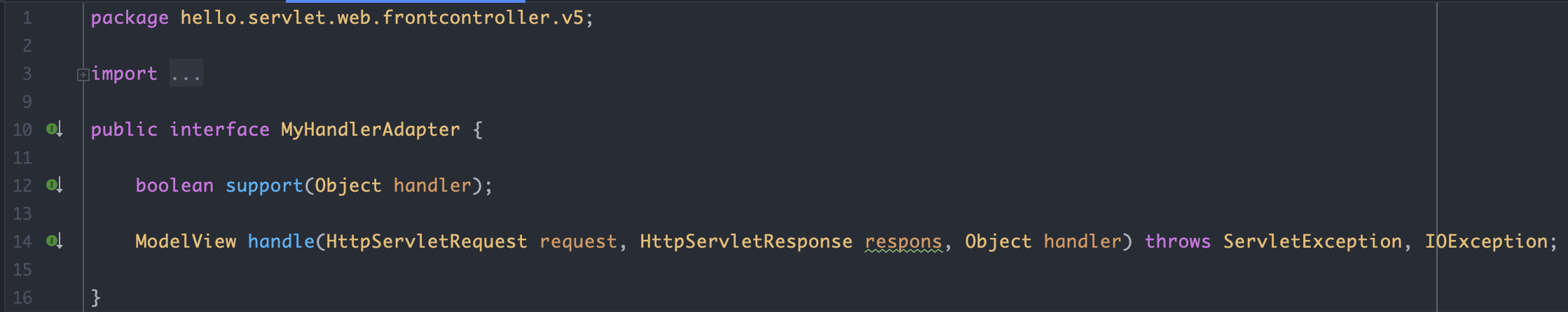 • ModelView handle(HttpServletRequest request, HttpServletResponse response, Object handler