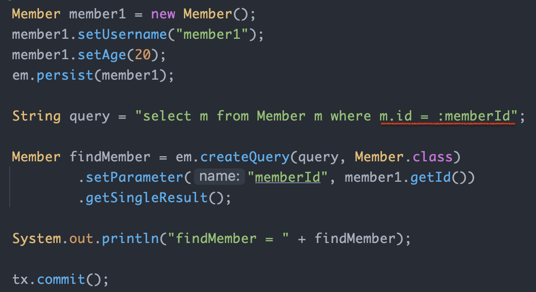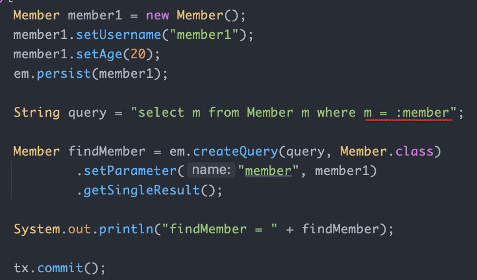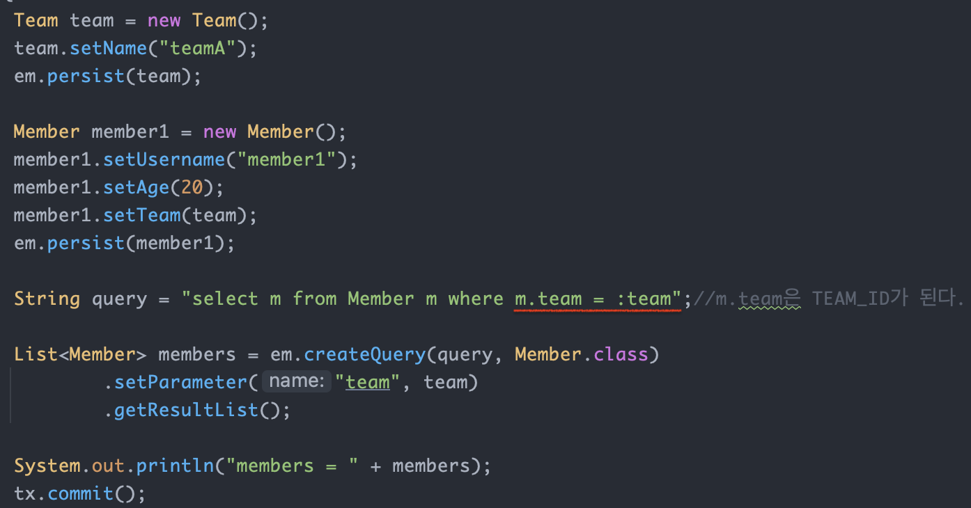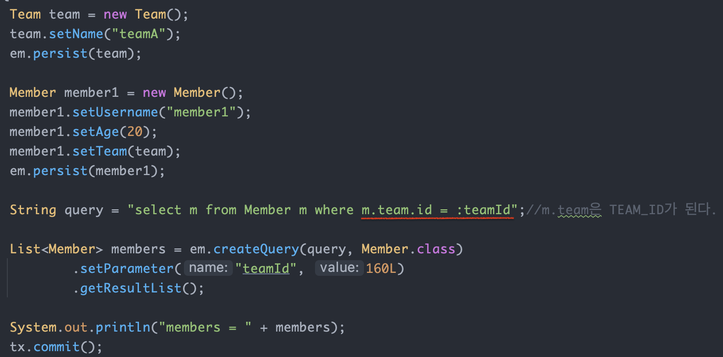 JPQL에서 엔티티를 직접 사용하면 SQL에서 해당 엔티티의 기본키 값을 사용합니다.