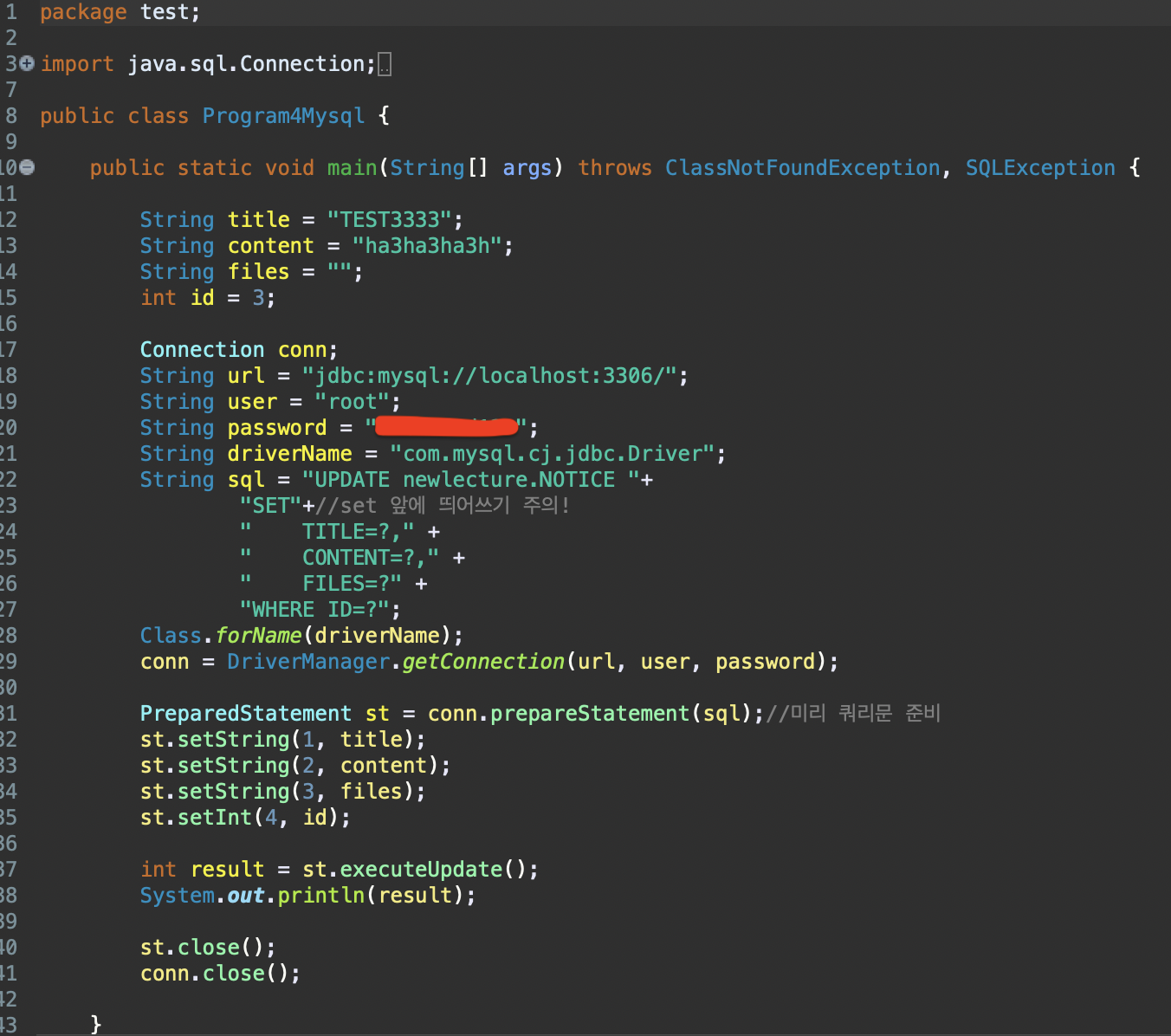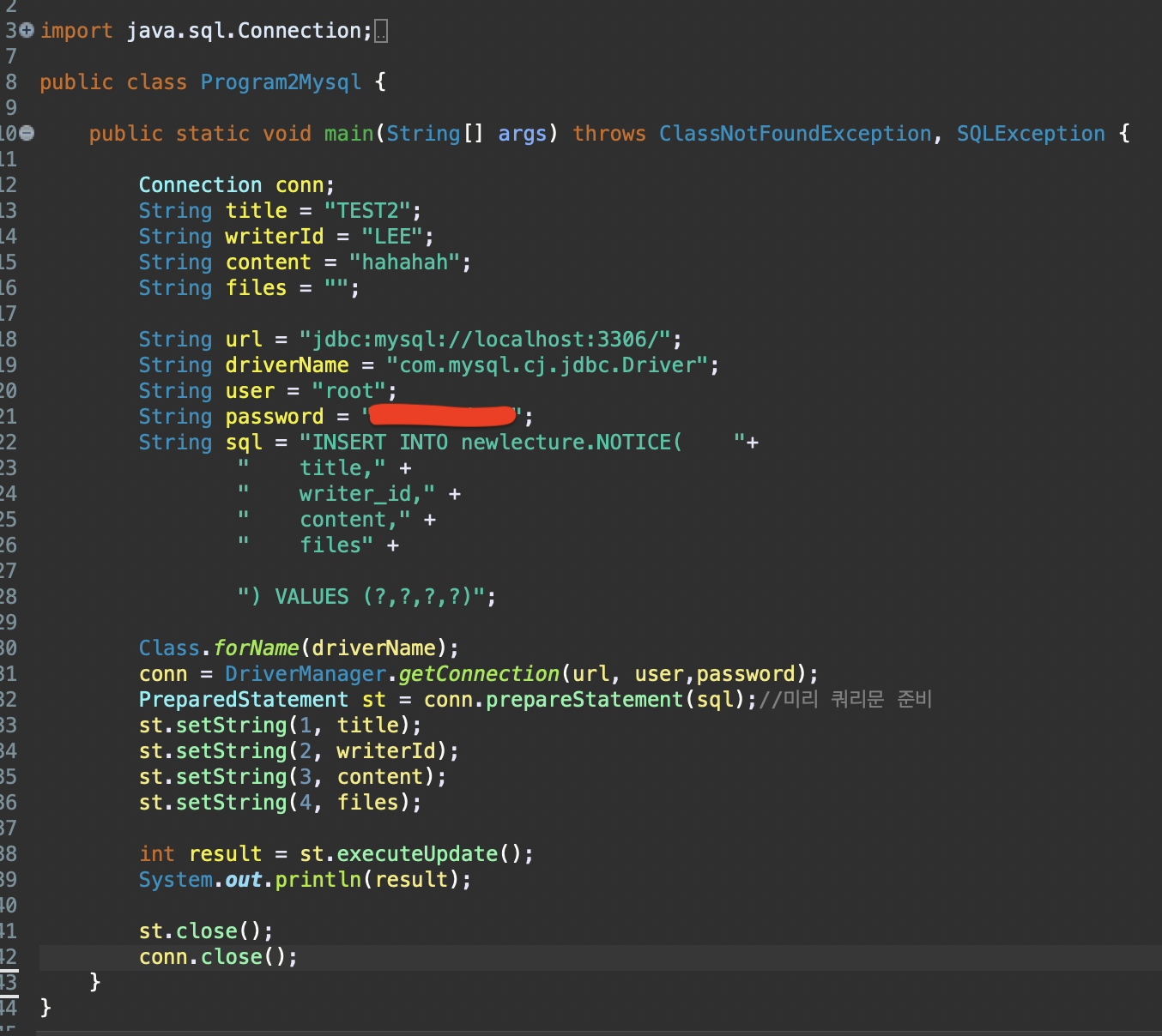 그냥 내 맥에 있던 MySql DB에 연결하여 실습하였다. jdbc라는 도구덕에 오라클 -> MySql로 바꾸는 것은 어렵지 않다.