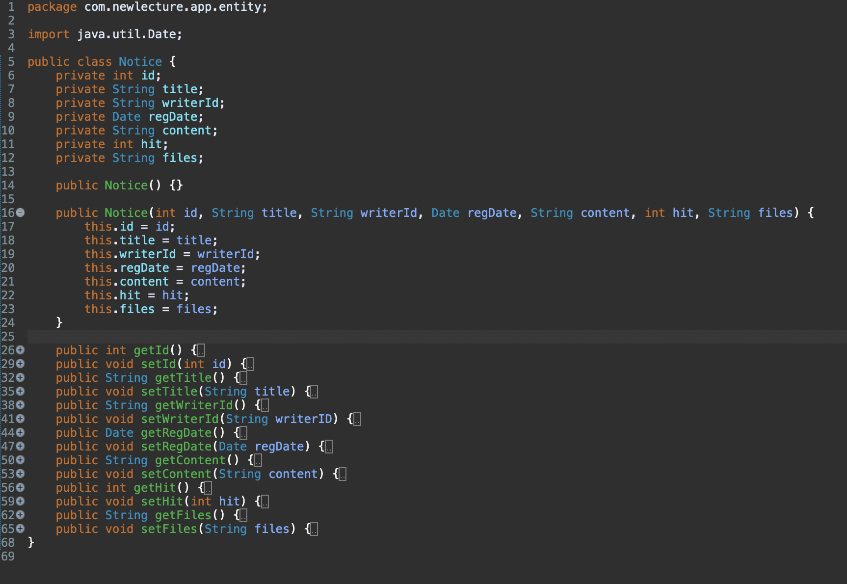 2. 각각 담은 변수를 통해 Notice 객체를 생성한다. ( Notice 클래스는 아래에 첨부)