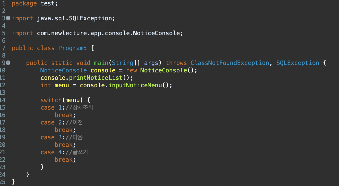 printNoticeList 메서드는 getList에서 정의된 쿼리문에 따라 가져온 DB의 데이터터들을 출력해준다.