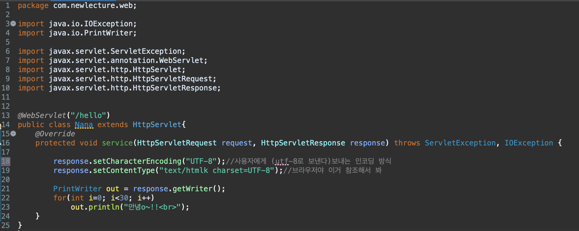 1."UTF-8"인코딩방식으로 보내고(한글을 쓰기위해) : response.setCharacterEncoding("UTF-8");