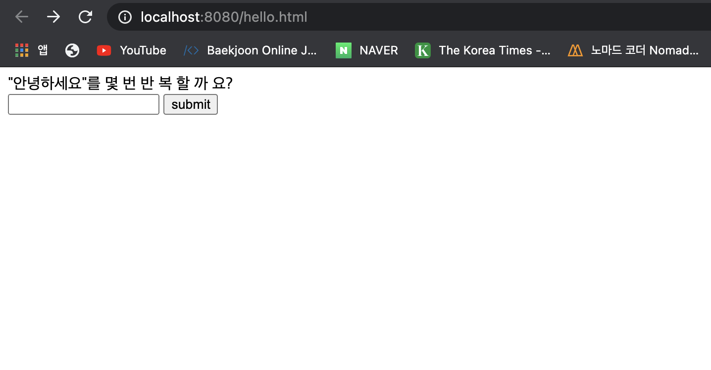 즉 submit을 누르면 ""hello?cnt=사용자 입력 값""와 같은 URL을 날리게 되는 것이다, 결과를 보자.