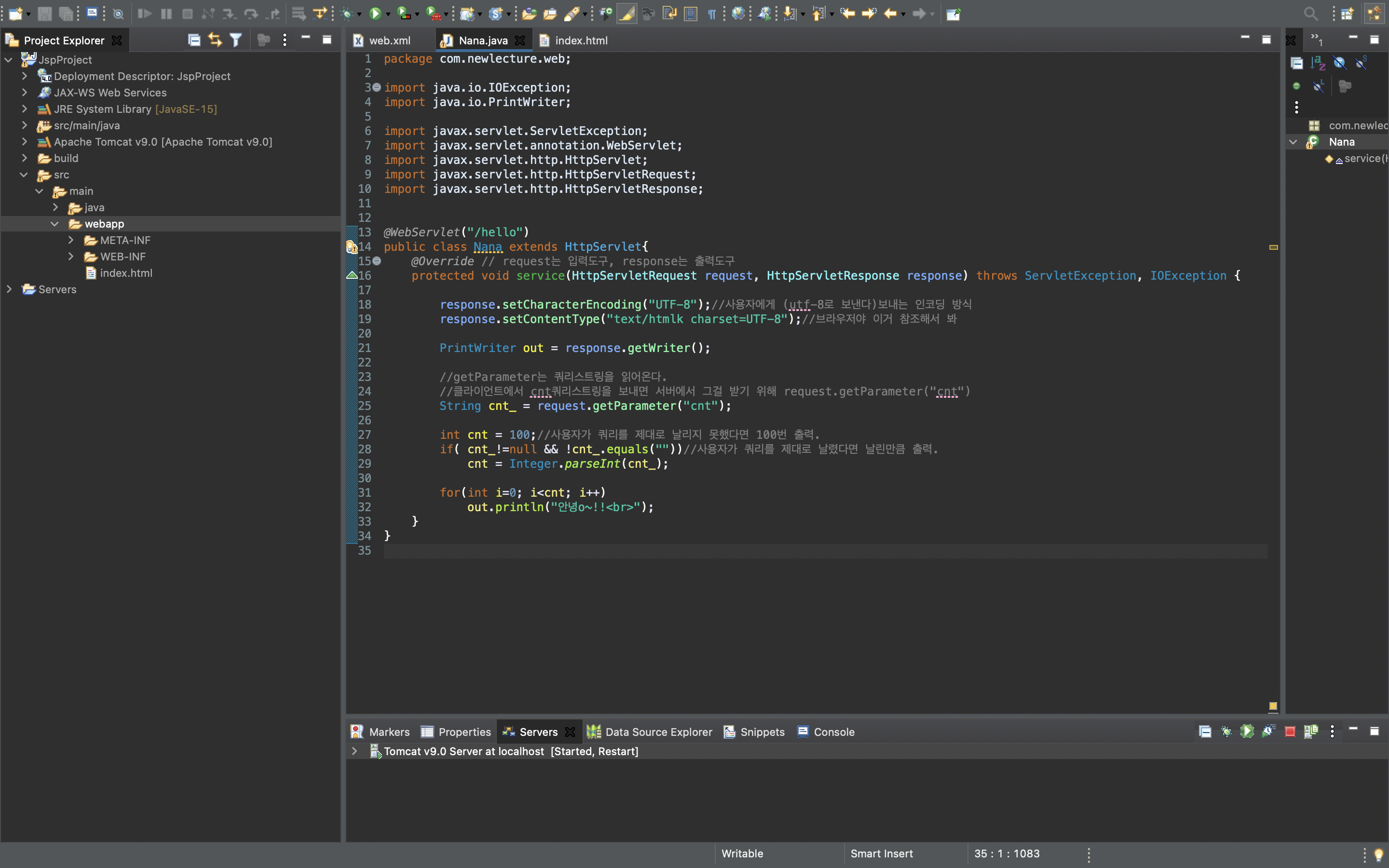 서블릿, jsp공부를 위해 이클립스 EE버전을 설치했다. 이클립스에서 Dynamic 프로젝트로 만들면 톰캣도 깔아주고 다 해준다..