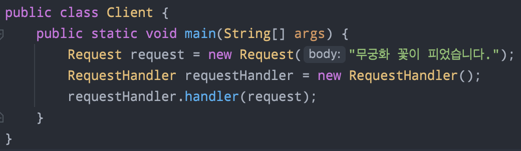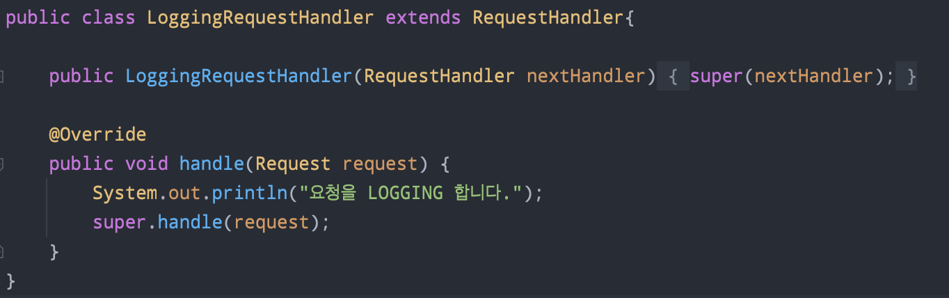 문제점2. 만약 사용자의 Request를 logging하는 새로운 로직이 삽입되어야한다면?? LogginRequestHandler를 만들어 Client가 사용하도록 해야하고, AuthRequestHandler는 또 어떻게 적용할 것인가??