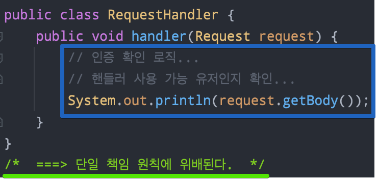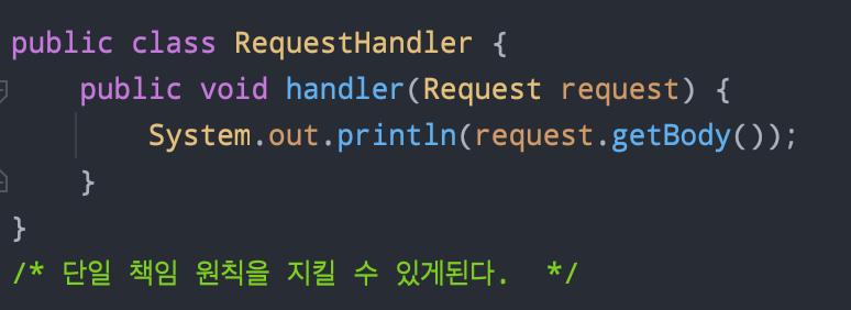그런데 위의 RequestHandler에 보이듯이 하나의 핸들러가 두가지 역할을 담당하고 있다.(주석에 써있는 글을 코드라고 가정한다.)