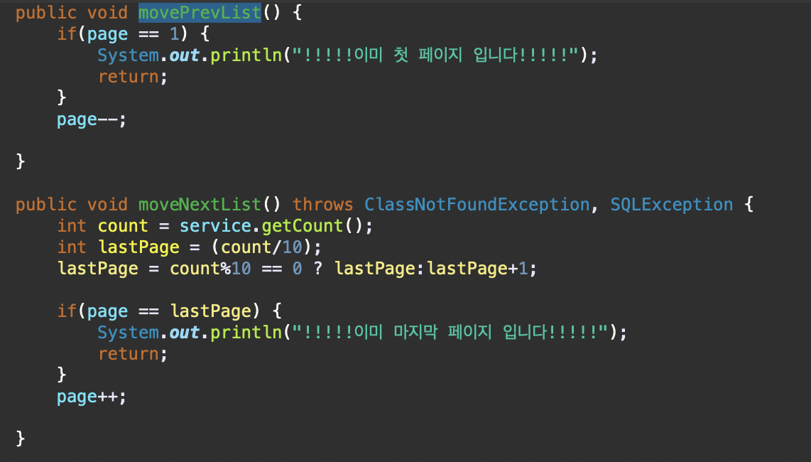멤버변수로 page를 두고, 이에 대해서 출력해주는 로직이다.