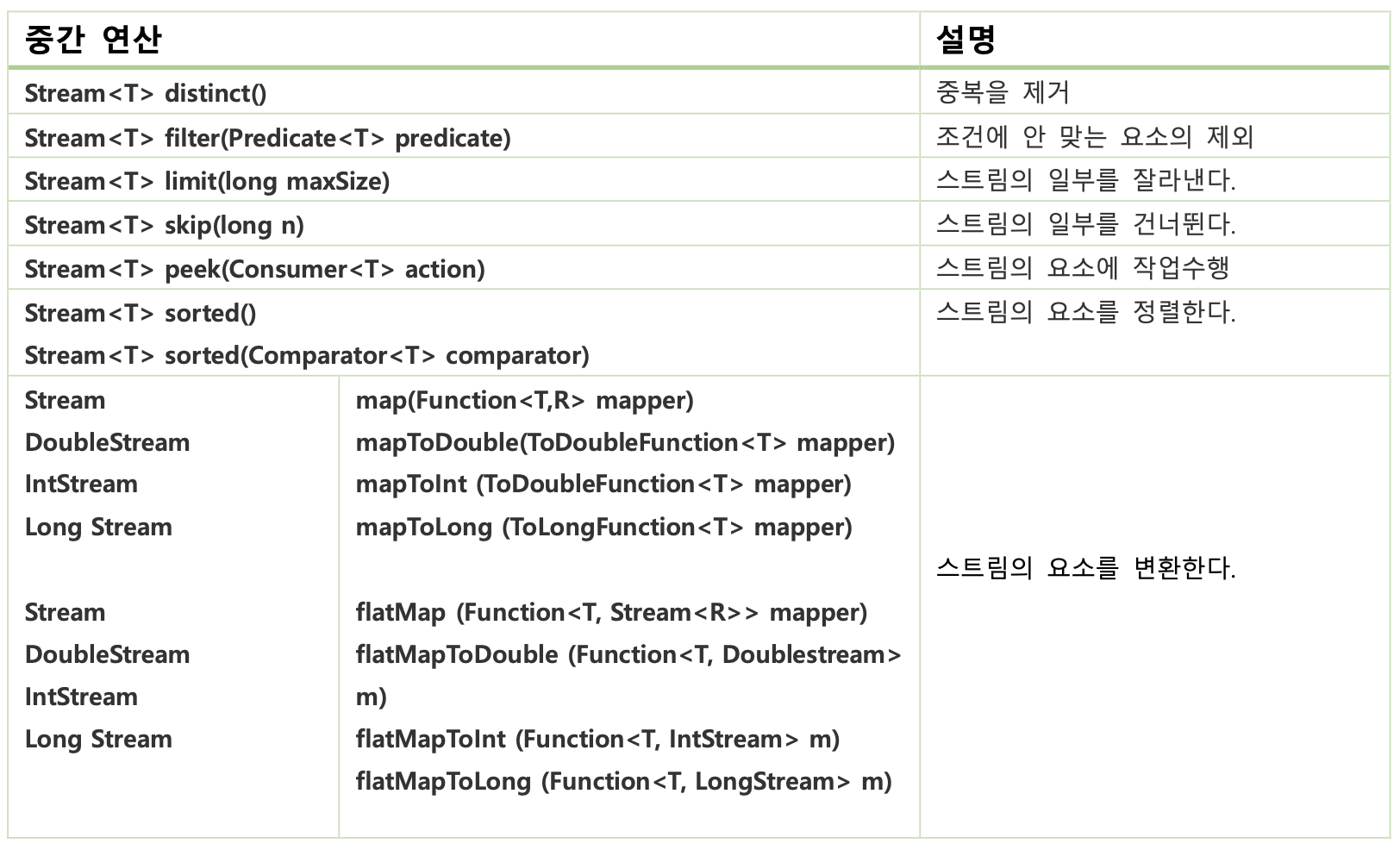 | 최종 연산 | 설명 |