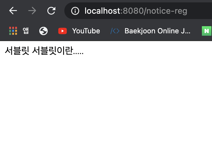 그럼 이제 NoticeReg서블릿의 요청 인코딩명령을 주석처리 하고 실행해보겠다.