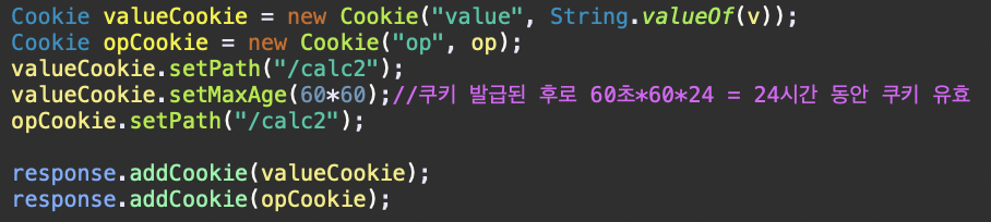 69, 70line: setPath를 통해 위에서 찍은 쿠키 객체들이 /calc 의 경로에서만 유효하다는 경로를 설정한다.