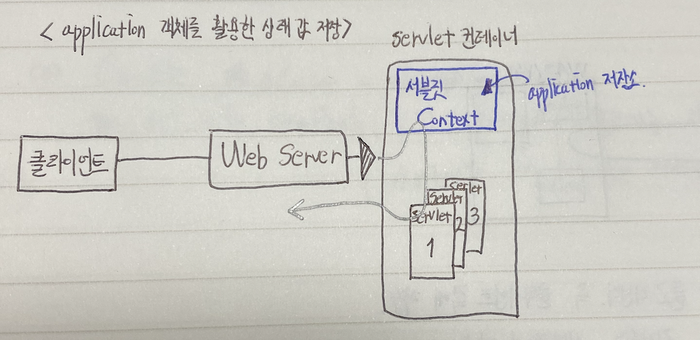 application 저장소는 모든 서블릿의 공용 저장소이다. 즉 A사용자가 있고, B사용자가 있을 때 A는 덧셈을 위해 1을 덧셈을 위해 3을 날렸다면 서버는 같은 이름의 다른 값의 데이터를 서블릿 컨체이너에서 어떻게 찾아서 누구에게 줘야할까?