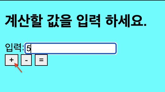 1.사용자가 처음에 5를 입력하고 (+)버튼을 누른 상황.