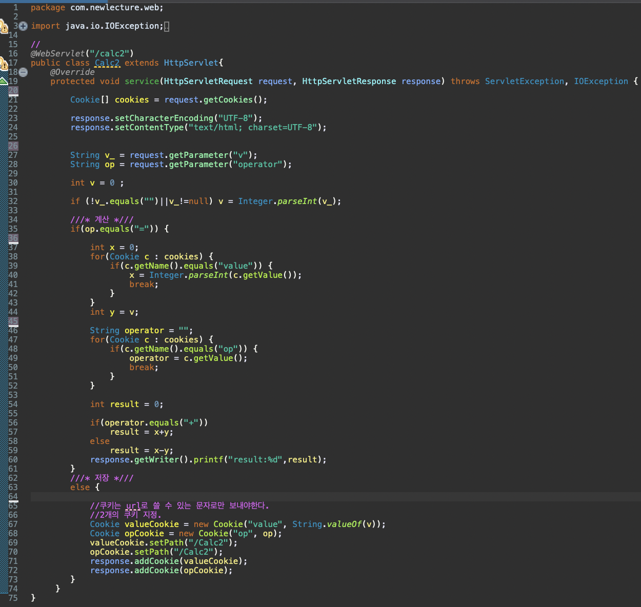 40line: 컨텍스트에 저장된 값중 << op >>라는 이름을 가진 값을 찾고, 그걸 String형으로 바꿔서 operator에 저장.
