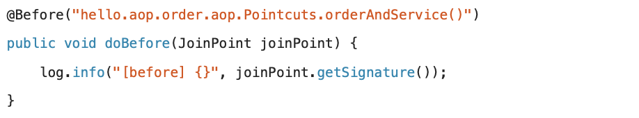 @Before("hello.aop.order.aop.Pointcuts.orderAndService()")
