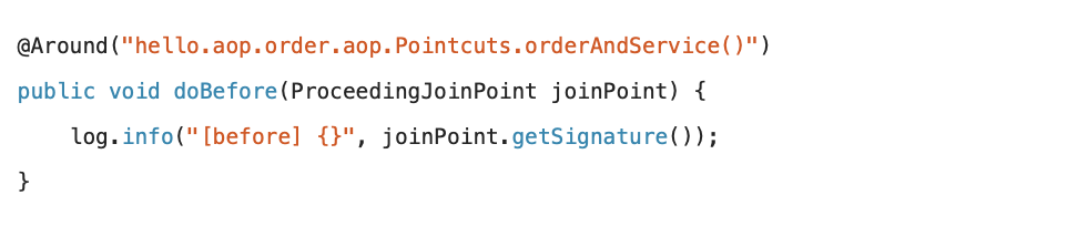 @Before("hello.aop.order.aop.Pointcuts.orderAndService()")//*Service에만 적용