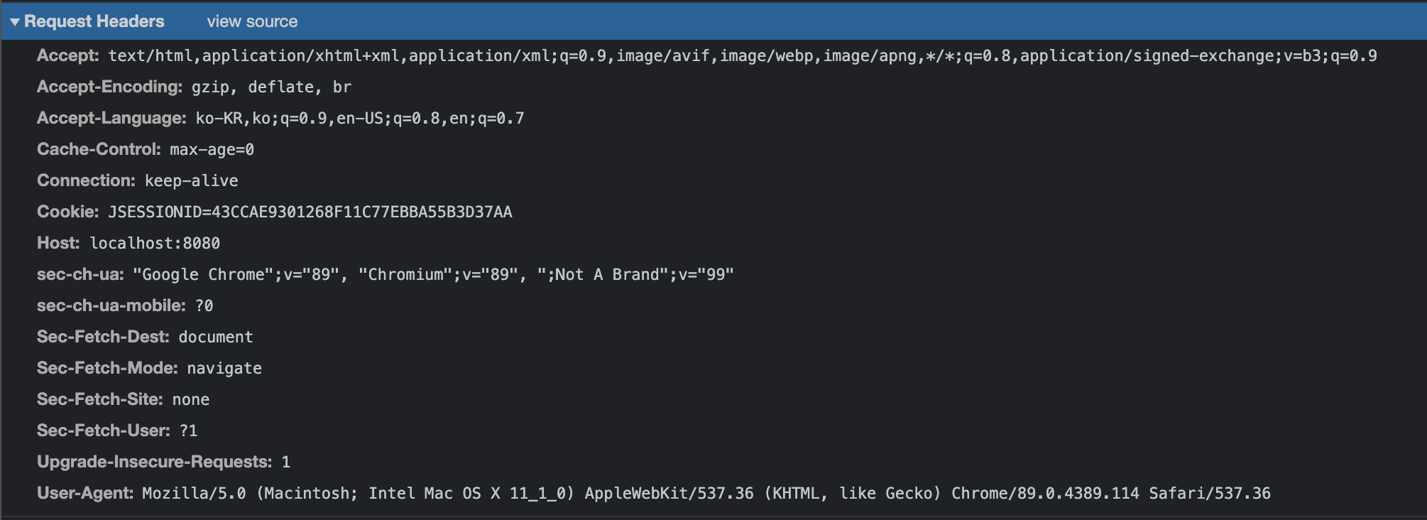 또한 header는 여러가지 Request hedaer의 정보를 얻을 수 있다.