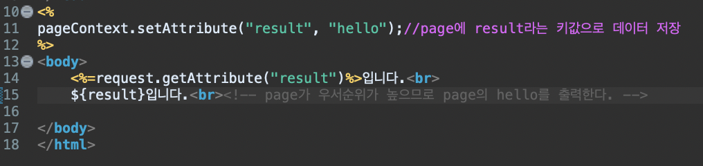 뷰에서 ${result}라 하면 page에 저장된 result가 출력된다.