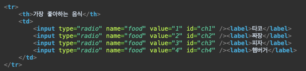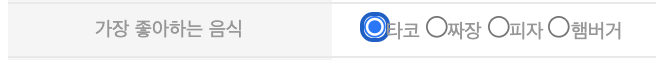 믈론 radio오 name값을 모두 다르게 하면 다중 선택이 가능하지만, 위에서는 모두 같게 하여 하나만 고르도록 했다.