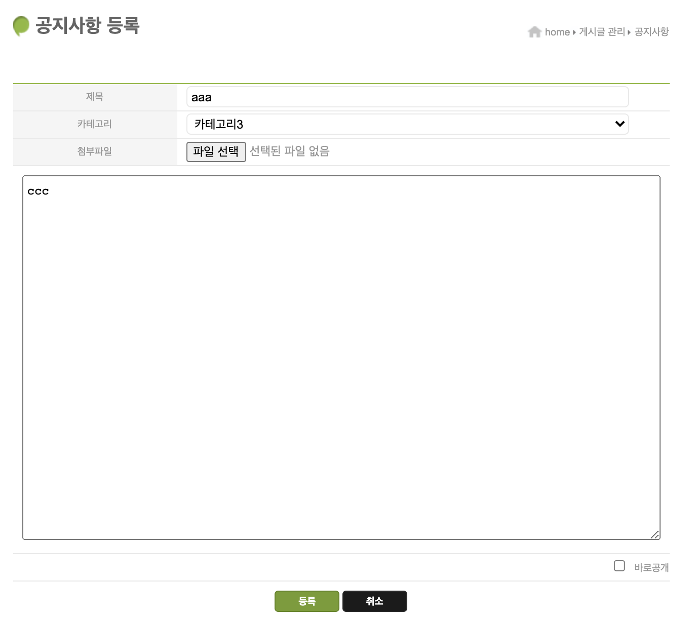 카테고리 3을 선택하고 등록버튼을 누르면?