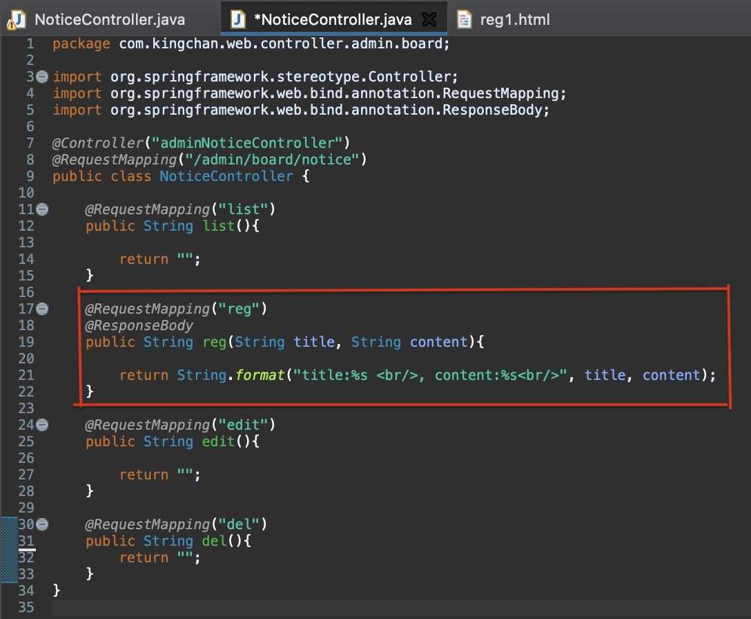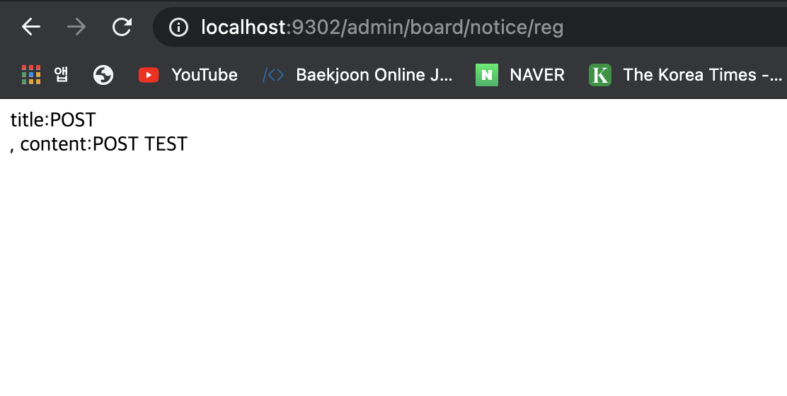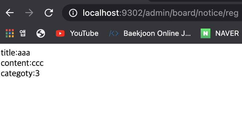 reg로 post한 데이터들이 날라오면, String title, String content 처럼 reg메서드의 인자로 값들을 받을 수 있다.