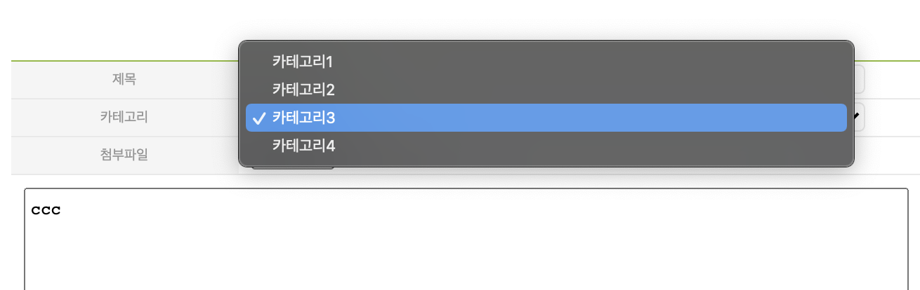 아래와 같은 카테고리를 선택하는 박스가 있다.