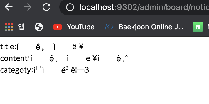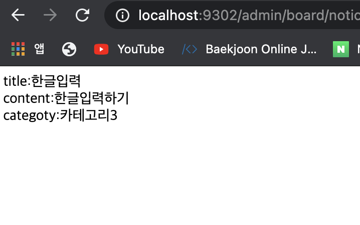 이제 모든 url이 필터를 거치도록 하였으니 한글 값을 날려보자.